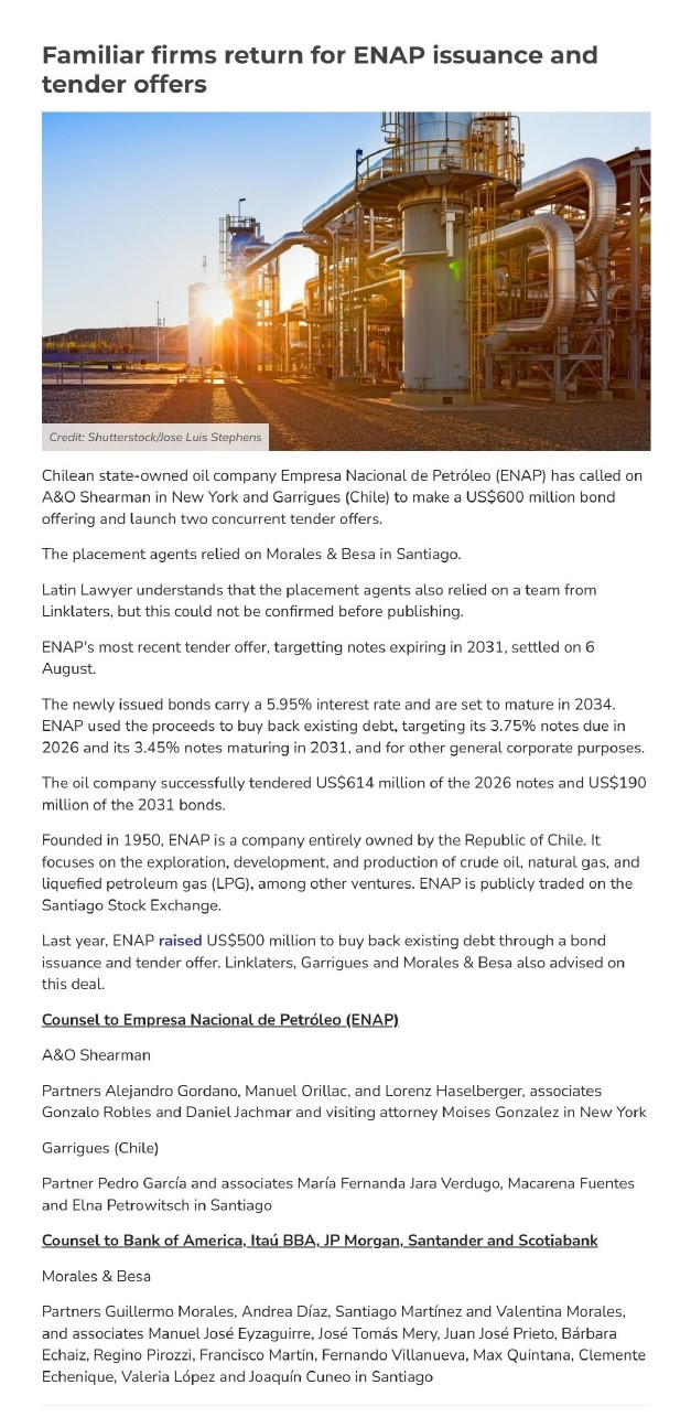 Familiar firms return for ENAP issuance and tender offers