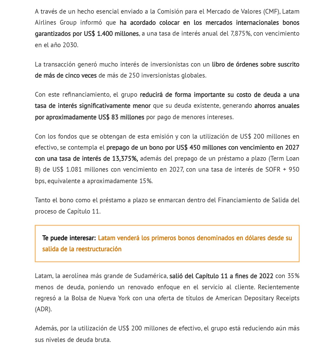 Morales & Besa asesora a Citigroup, Santander, Deutsche Bank y J.P. Morgan en la emisión de bonos internacionales de LATAM Airlines